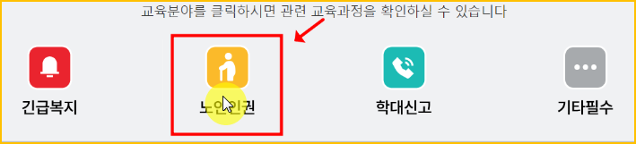 회원가입 또는 로그인 진행 후 교육분야 - 노인인권을 클릭하게 되면 2024년도 교육과정인