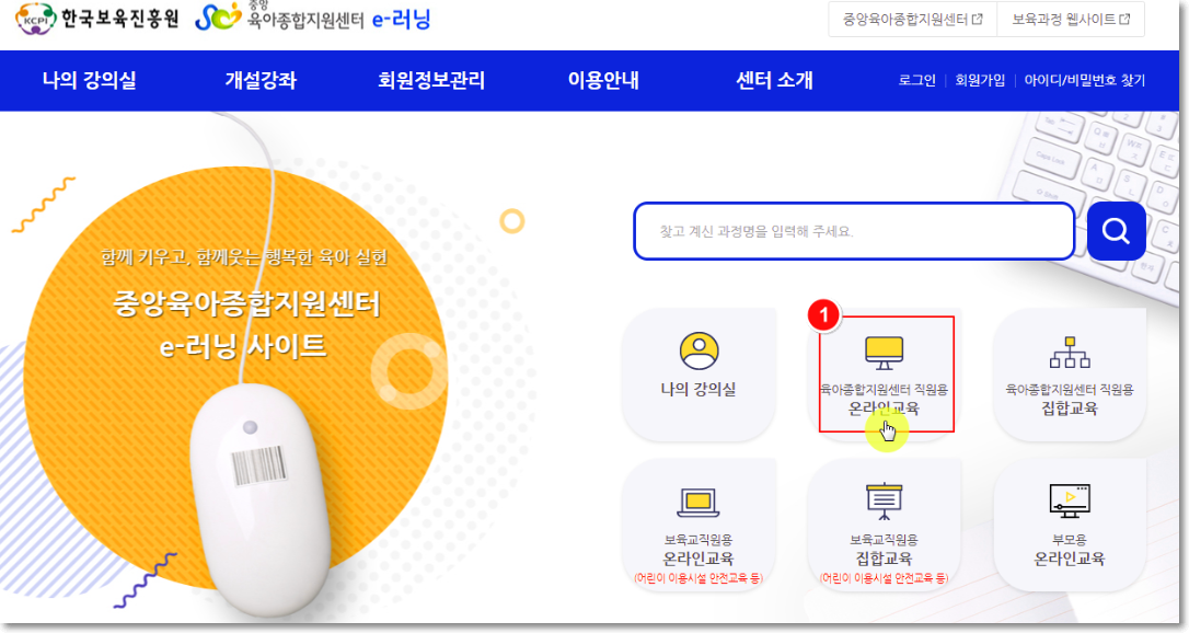 - 중앙육아종합지원센터의 e러닝 홈페이지 로그인
