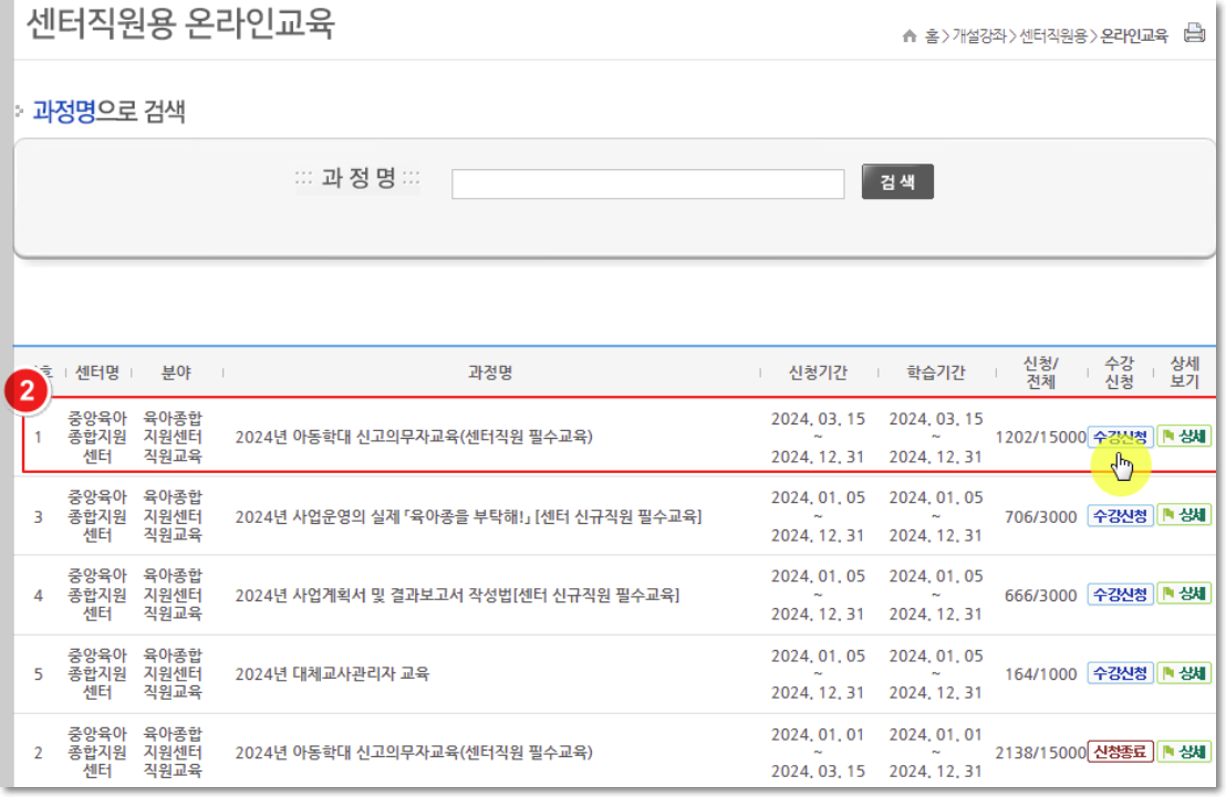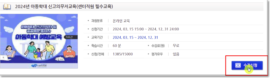 - 2024년 아동학대 신고의무자교육(센터직원 필수교육) 클릭.