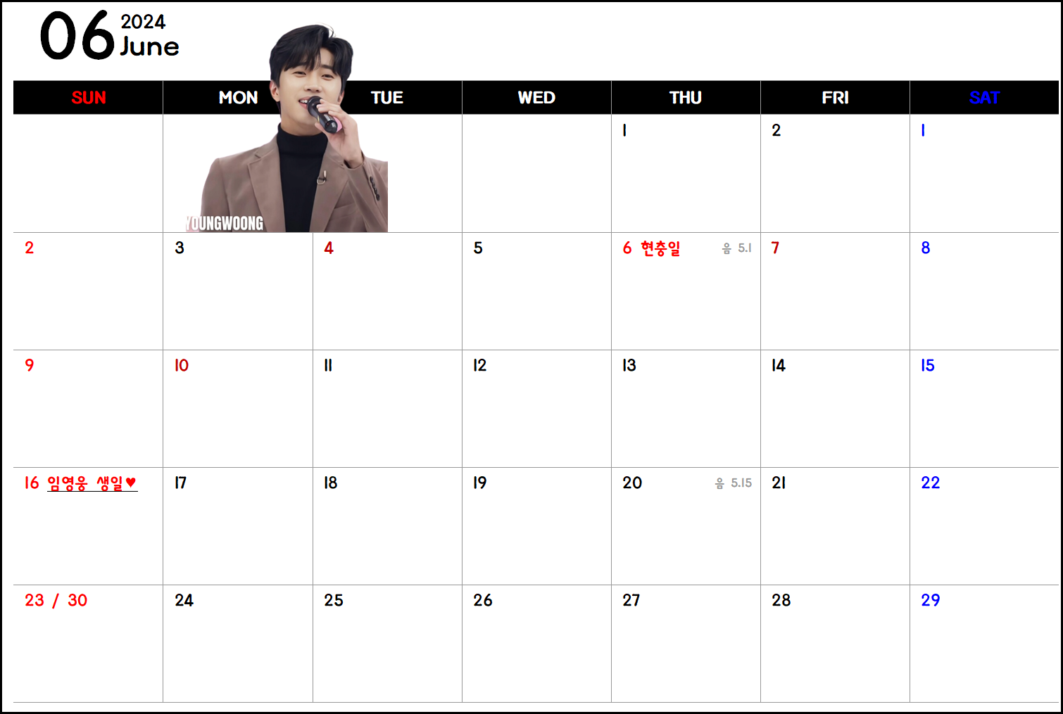 2024 임영웅 달력 무료 다운로드