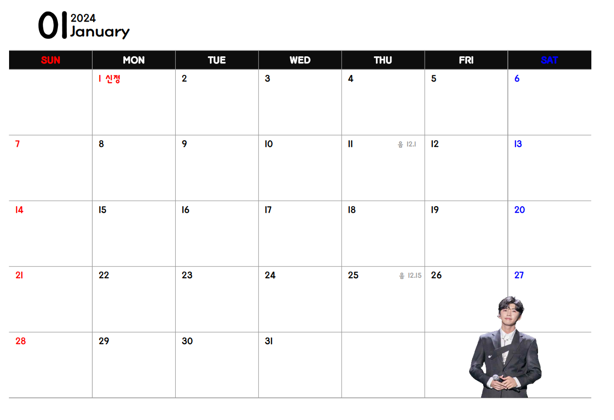 2024년 임영웅 달력 무료 다운로드 파일을 공유합니다. 아래에서 공유하는 임영웅 달력 파일은 각 월별 임영웅 가수에 대한 이미지와 더불어 공휴일 정보등에 대하여 작성했습니다. 임영웅 가수 팬이라면 꼭 소장해야할 2024년 임영웅 달력 무료 다운로드 파일은 프린터 출력 및 수정, 그리고 pdf 버전으로도 다운가능합니다. 이와 더불어  2024년도 공휴일에 대한 정보도 빠르게 확인할 수 있습니다. 임영웅 달력이 필요하다면 끝까지 읽어주시기 바랍니다.
