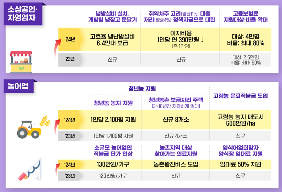 2. 갑진년 소상공인 / 자영업자 / 농어민 / 산업단지 / 창업벤처을 위한 지원책