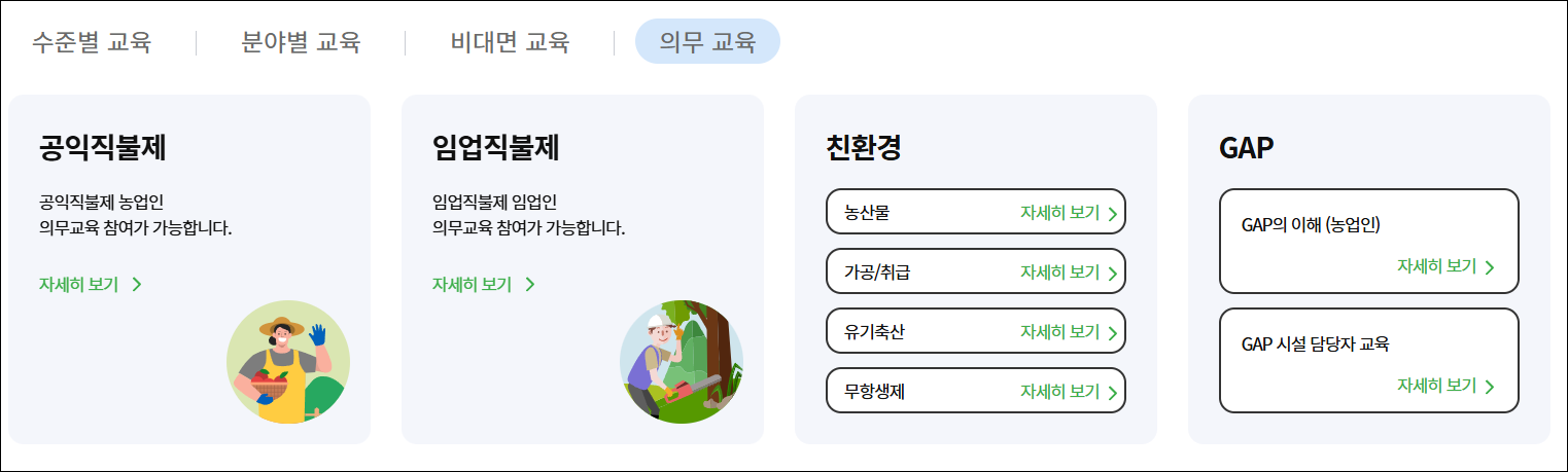 - 만 65세 이상 고령 농업인, 장애인 등은 교육이 면제될 수 있습니다.