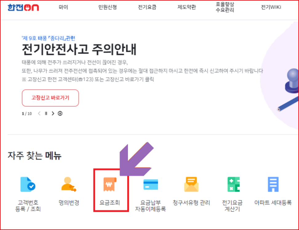 - 이후 '요금 조회' 메뉴를 클릭해 주십시오.