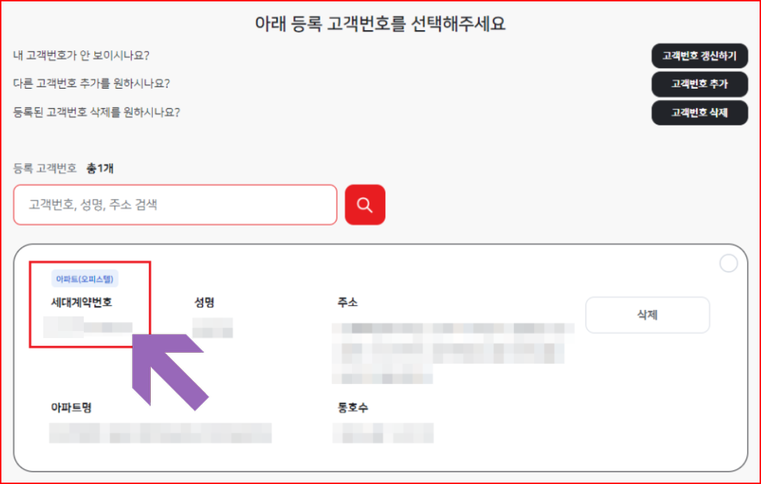 - '고객번호 조회' 버튼을 클릭하시면 됩니다.