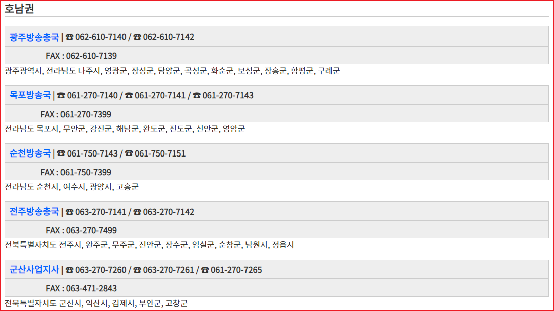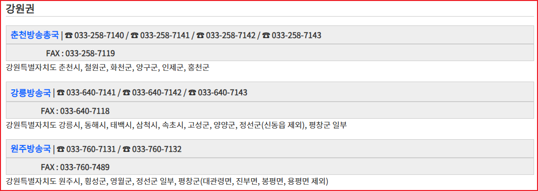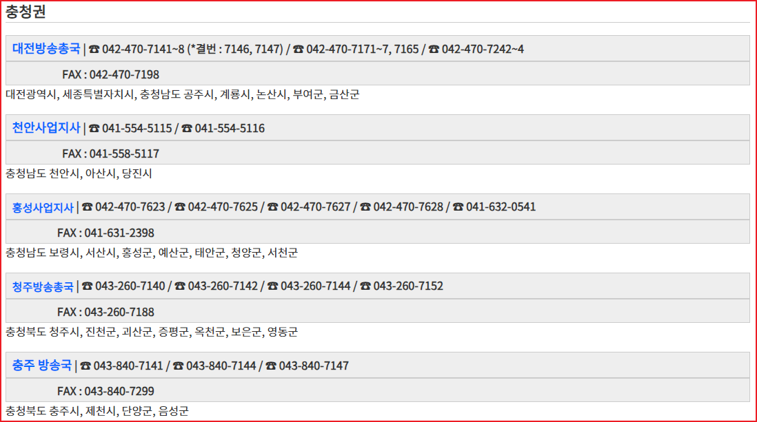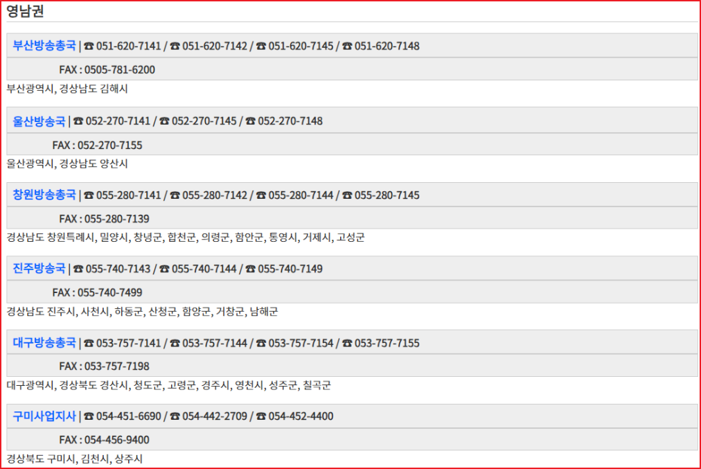 KBS 수신료 납부 거부를 위해 콜센터 및 홈페이지 이용에도 오랜시간이 걸린다면 관할 지역별 수신료 사업지사 유선을 통해 신청할 수 있습니다.